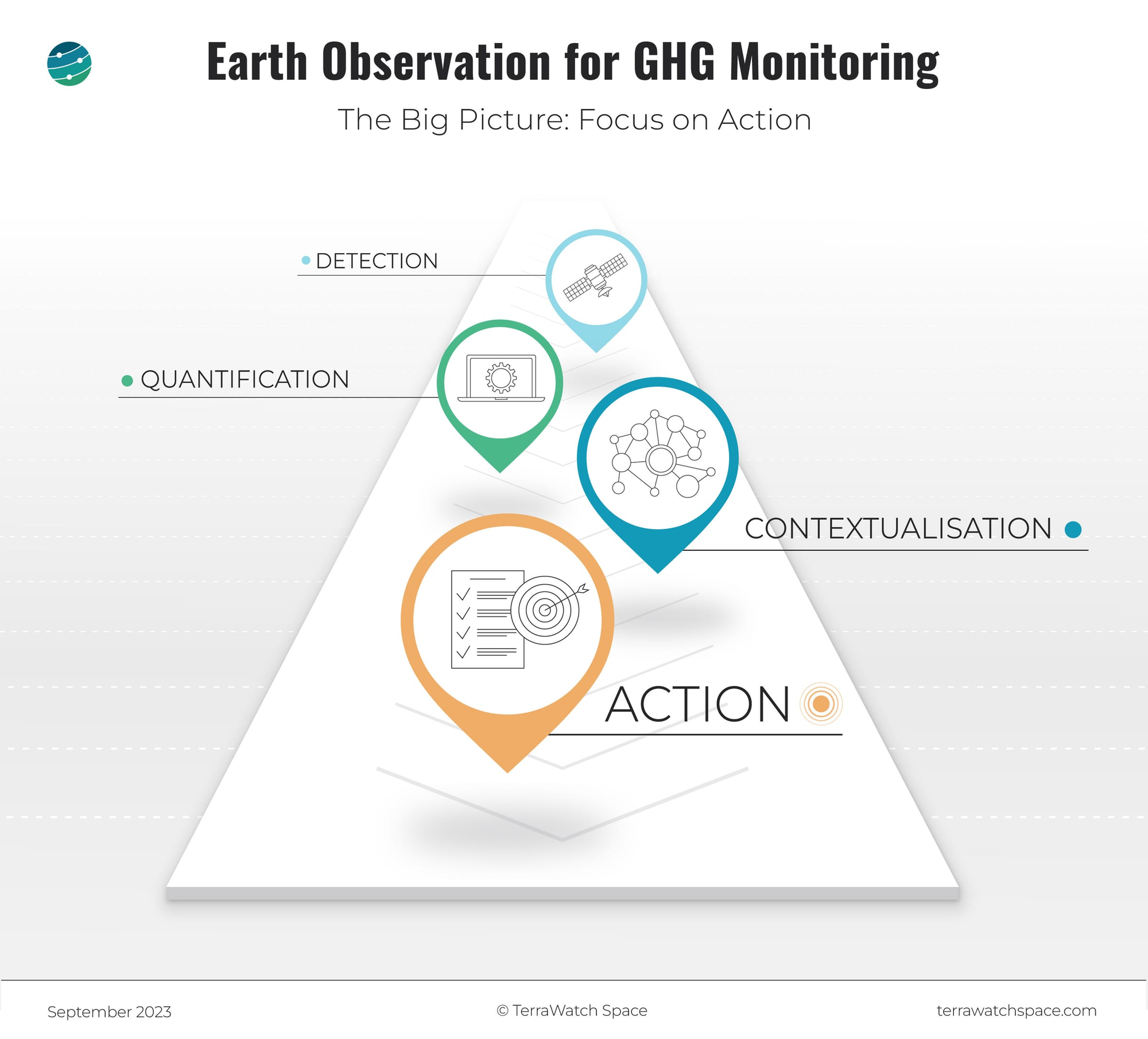Action is where the framework justifies itself. Regulatory mandates provide one pressure point, but economics matter equally - methane leaks represent direct revenue loss for energy firms, not just compliance risk. Yet intervention requires more than data delivery: it demands incentive alignment, operational capacity, and often technical training to enable fixes.