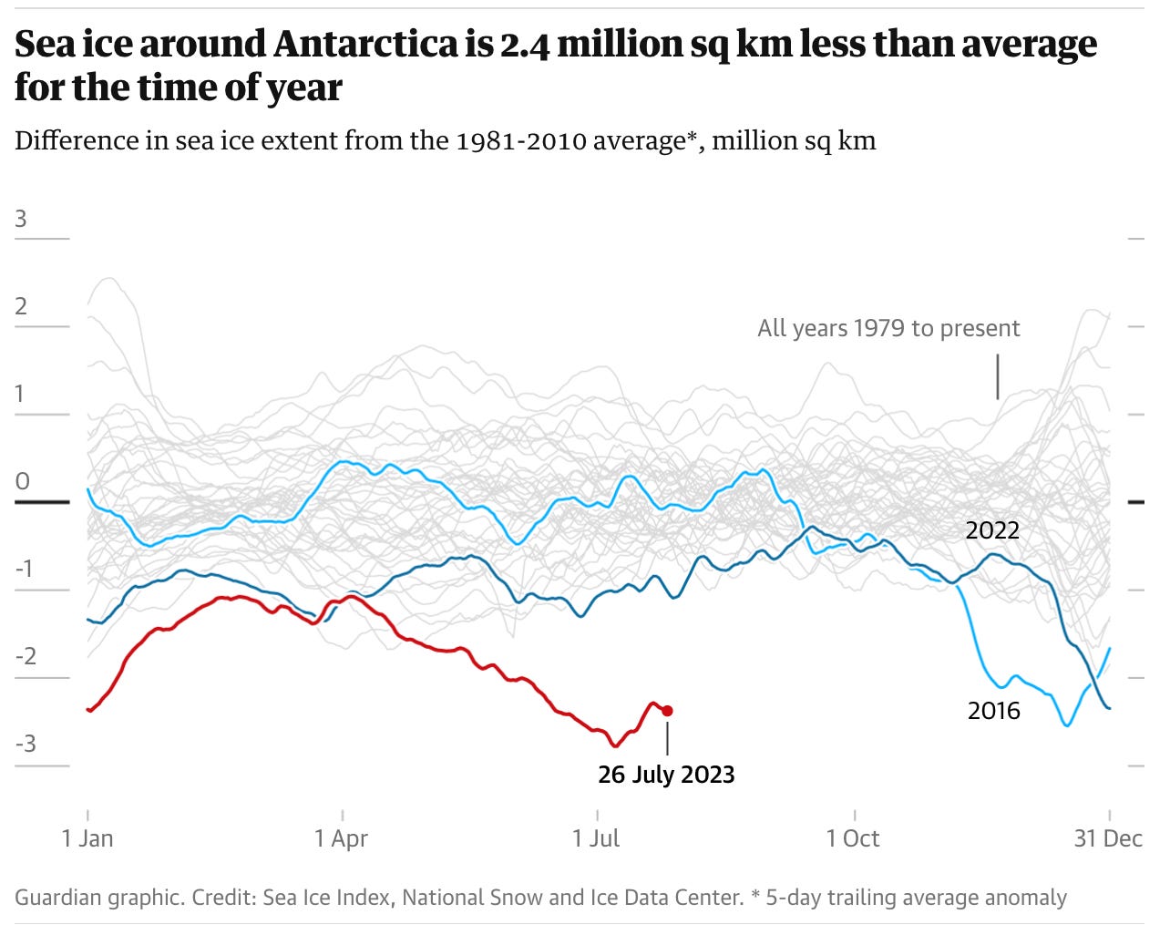 - This piece that digs into why the Antarctic sea ice levels are so low.