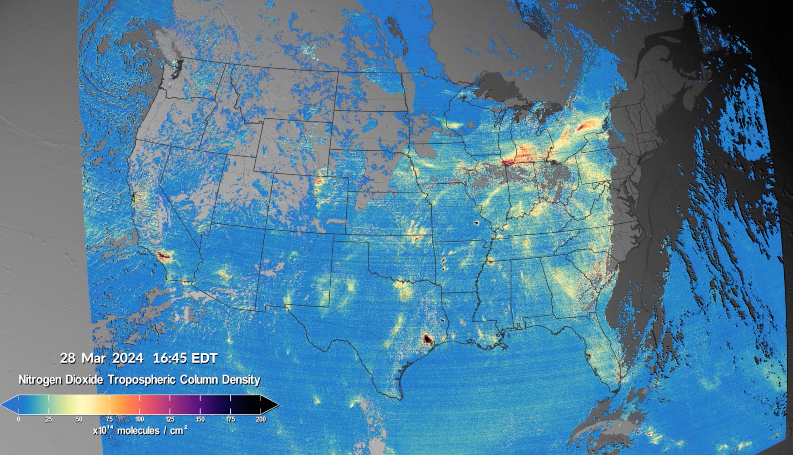 NASA has made new data available from the TEMPO mission capable of providing near real-time air pollution observations at very high resolutions.