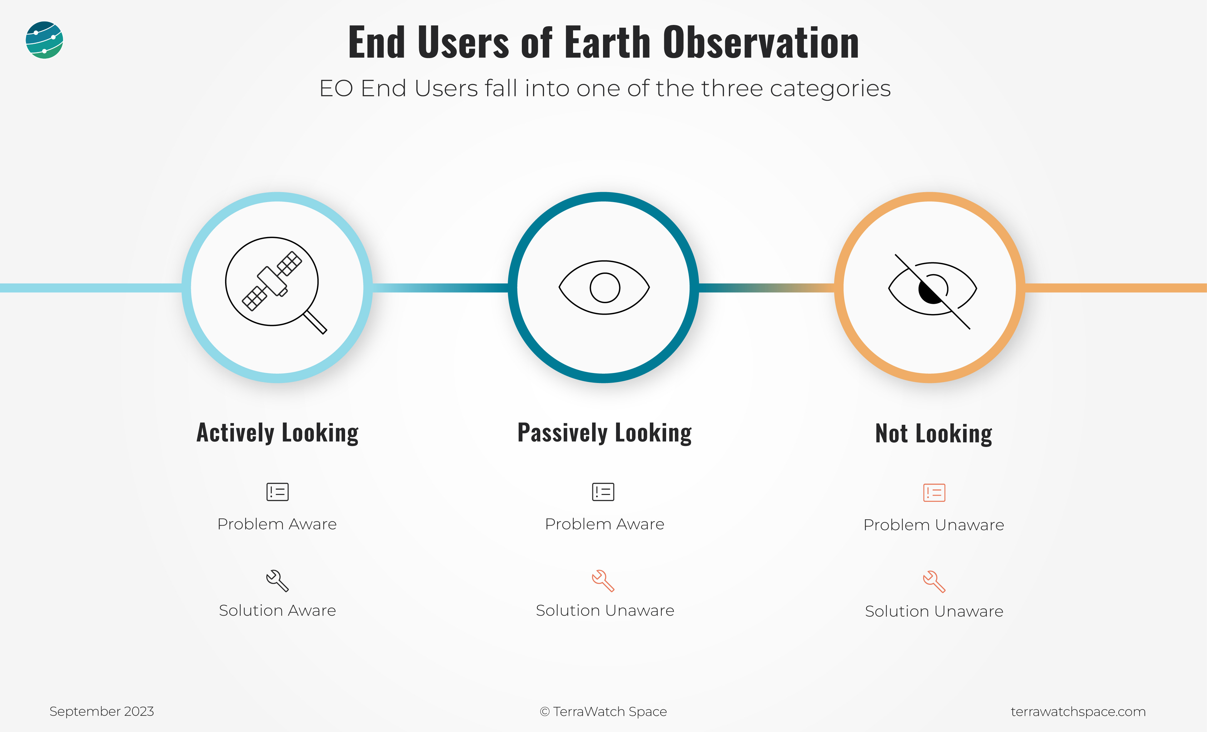 I believe that the end-users of EO fall into one of 3 categories, which I decided to simply call: Actively Looking, Passively Looking and Not Looking.