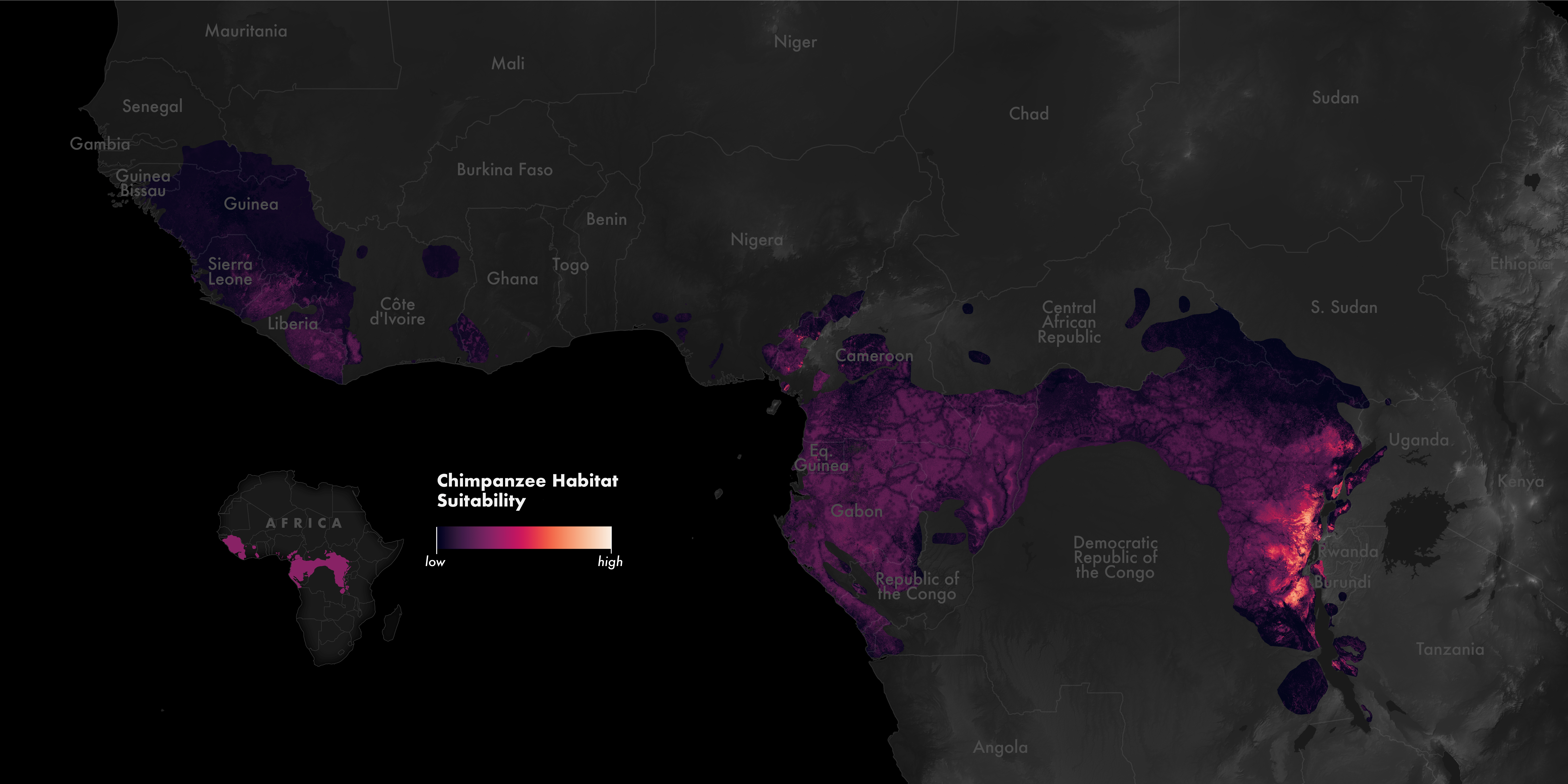 - This video from NASA that shows how the Jane Goodall Institute has been leveraging satellite imagery to track land-use and land-cover changes, used for building habitat suitability models for chimpanzee habitat conservation.
