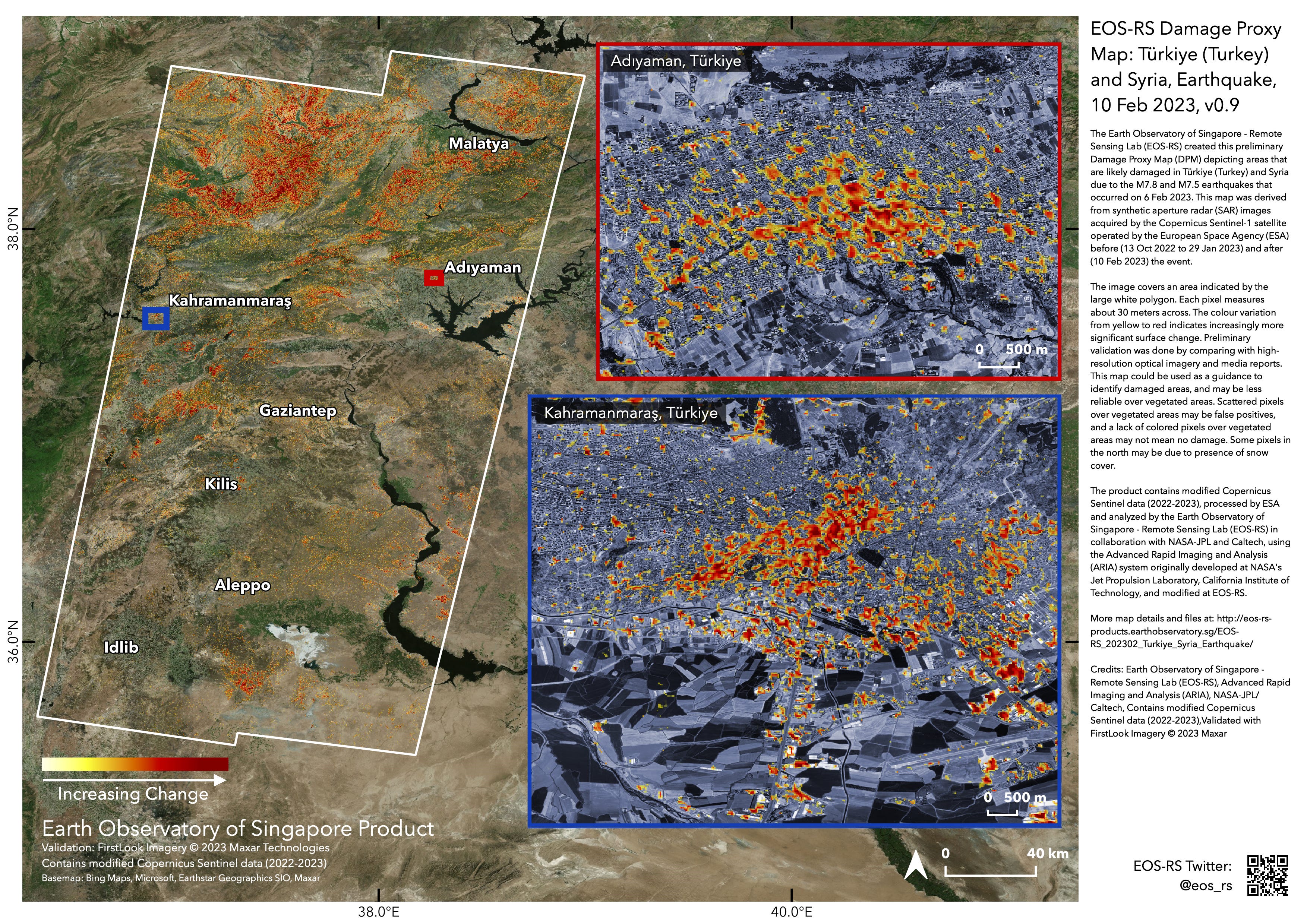 - Damage proxy maps (pictured above) from Earth Observatory of Singapore;