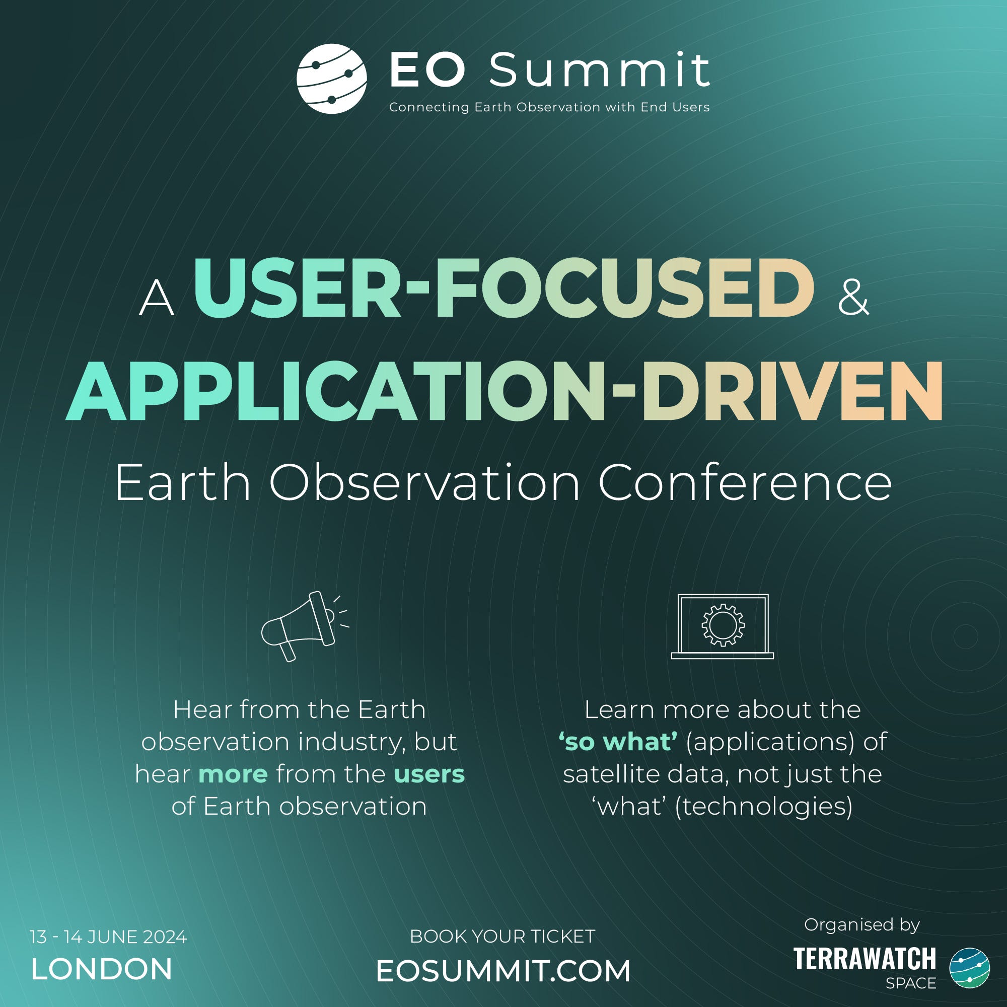 Here is an infographic summarising the concept behind EO Summit and what sets it apart from other conferences in the Earth observation sector: being user-focused and application-driven, which does not happen often.